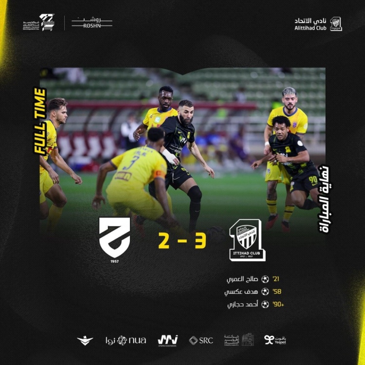 吉达联合首发:1-马约夫、26-赫加齐、30-阿尔穆萨(69'11-若塔)、15-卡德什、37-萨古尔克、33-奥拉扬、29-沙姆拉尼、77-阿姆里(90'22-哈马米)、90-罗马里尼奥(70'13-山凯蒂)、99-哈姆达拉、9-本泽马