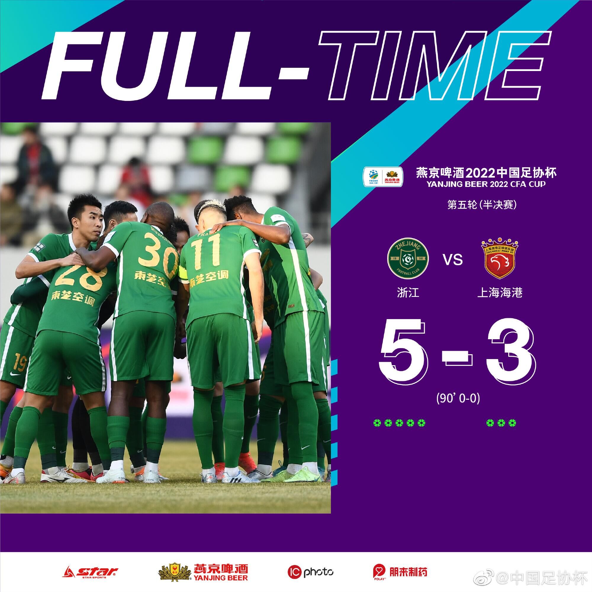 直播1月11日讯 北京时间1月11日下午16:30,足协杯半决赛,上海海港对阵浙江。上半场伊萨-卡隆伤退,武磊频造威胁。下半场,奥斯卡失良机,董宇伤退,吕文君头球中框。常规时间结束,双方互交白卷。点球大战中吕文君失点,穆谢奎勺子点球制胜。全场结束,浙江点球大战5-3胜出后队史首次挺进决赛,他们将与山东泰山争夺最终冠军。