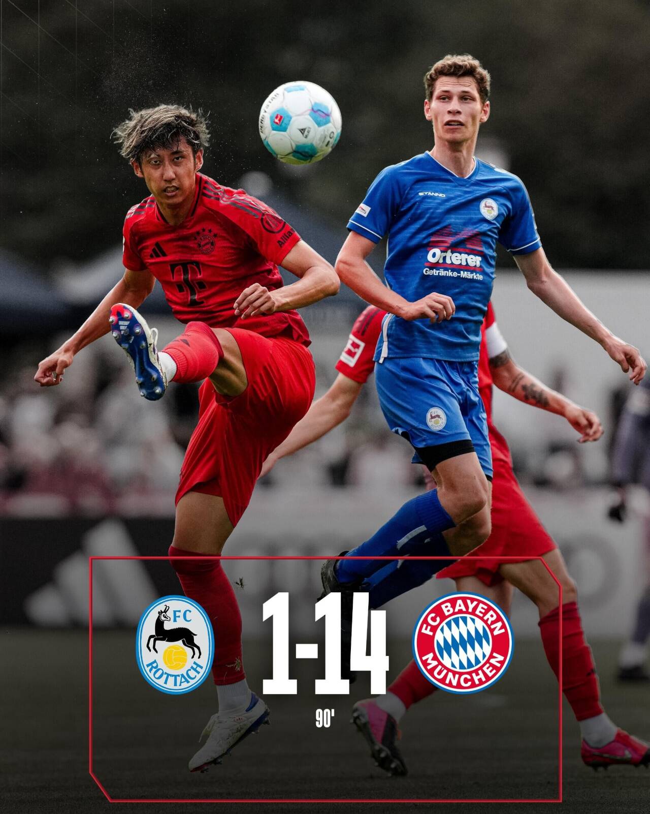 7月25日讯 足球友谊赛,拜仁14-1大胜德国业余球队罗塔赫埃根。