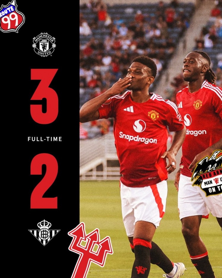 8月1日讯 北京时间10:00,季前友谊赛曼联vs贝蒂斯。上半场,洛萨达帮助贝蒂斯取得领先;随后阿马德造点,拉什福德点射扳平;第24分钟阿马德爆射反超比分;拉什福德助攻卡塞米罗再下一城!下半场,迭戈-略伦特头球扳回一城。最终,曼联3-2击败贝蒂斯,4场季前赛取得第2胜。北京时间8月4日7:45,曼联将在第5场季前赛迎战利物浦。