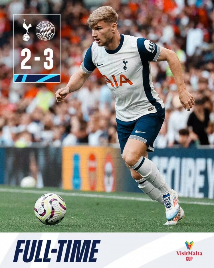 8月11日讯 北京时间0:30,友谊赛热刺vs拜仁。上半场,库卢开场1分钟闪击;于帕、格纳布里、穆勒帮助拜仁连入三球。下半场,热刺新援贝里瓦尔破门,随后不久无对抗伤退;凯恩第80分钟登场,再次踏上热刺主场。最终,拜仁3-2战胜热刺,在背靠背2场友谊赛中双杀对手。