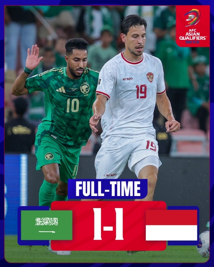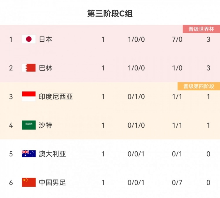 9月6日讯 世预赛亚洲区第三阶段C组第一轮,国足同组对手,沙特主场1-1战平印度尼西亚。