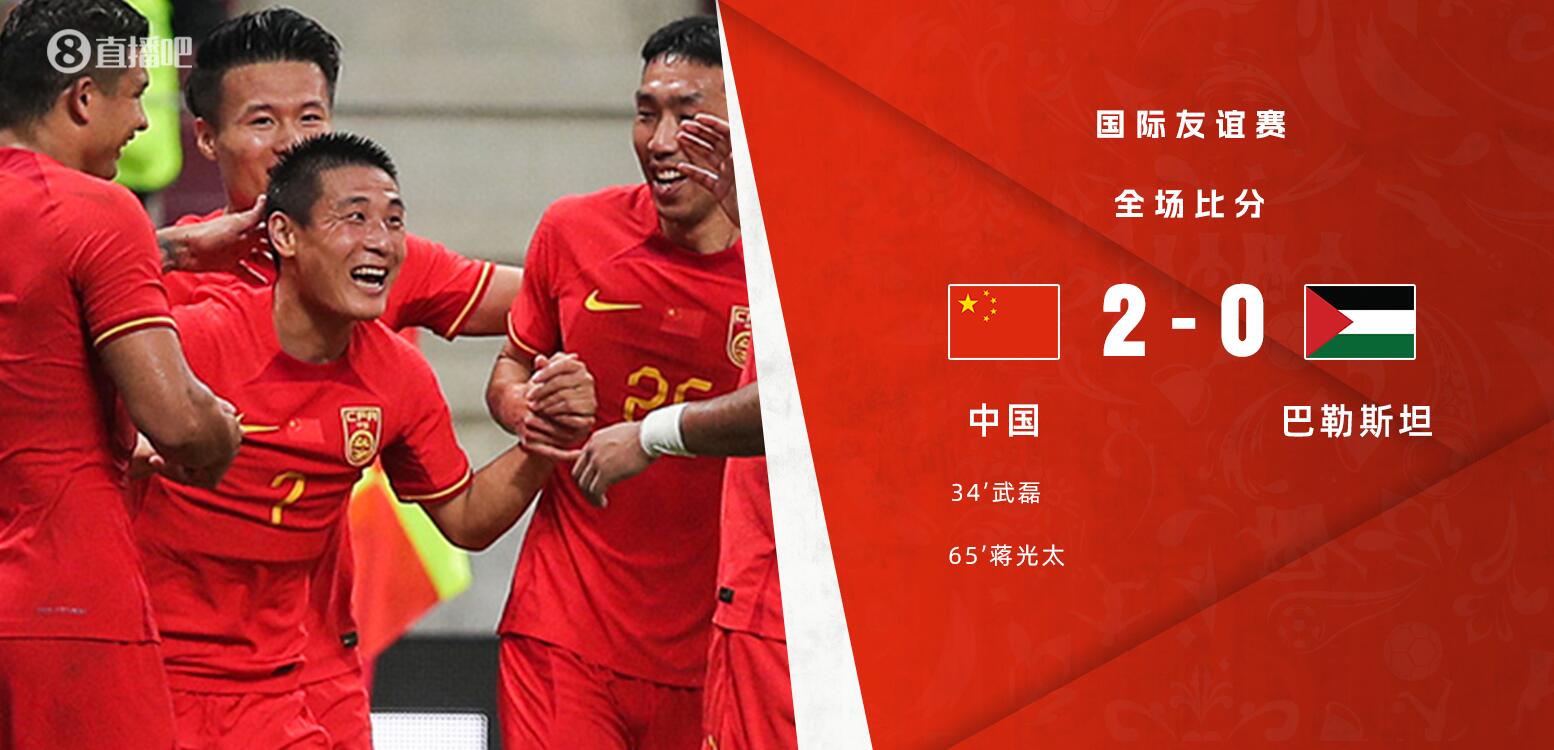 6月20日讯 北京时间6月20日晚19点35分,2023年一场国际足球友谊赛在大连梭鱼湾球场展开角逐,中国男足对阵巴勒斯坦。上半场高准翼头球中框后助攻,武磊连场破门,下半场巴勒斯坦两中柱,蒋光太补射收获国家队首球。最终中国男足主场2-0战胜巴勒斯坦,国足友谊赛取得两连胜且零失球。