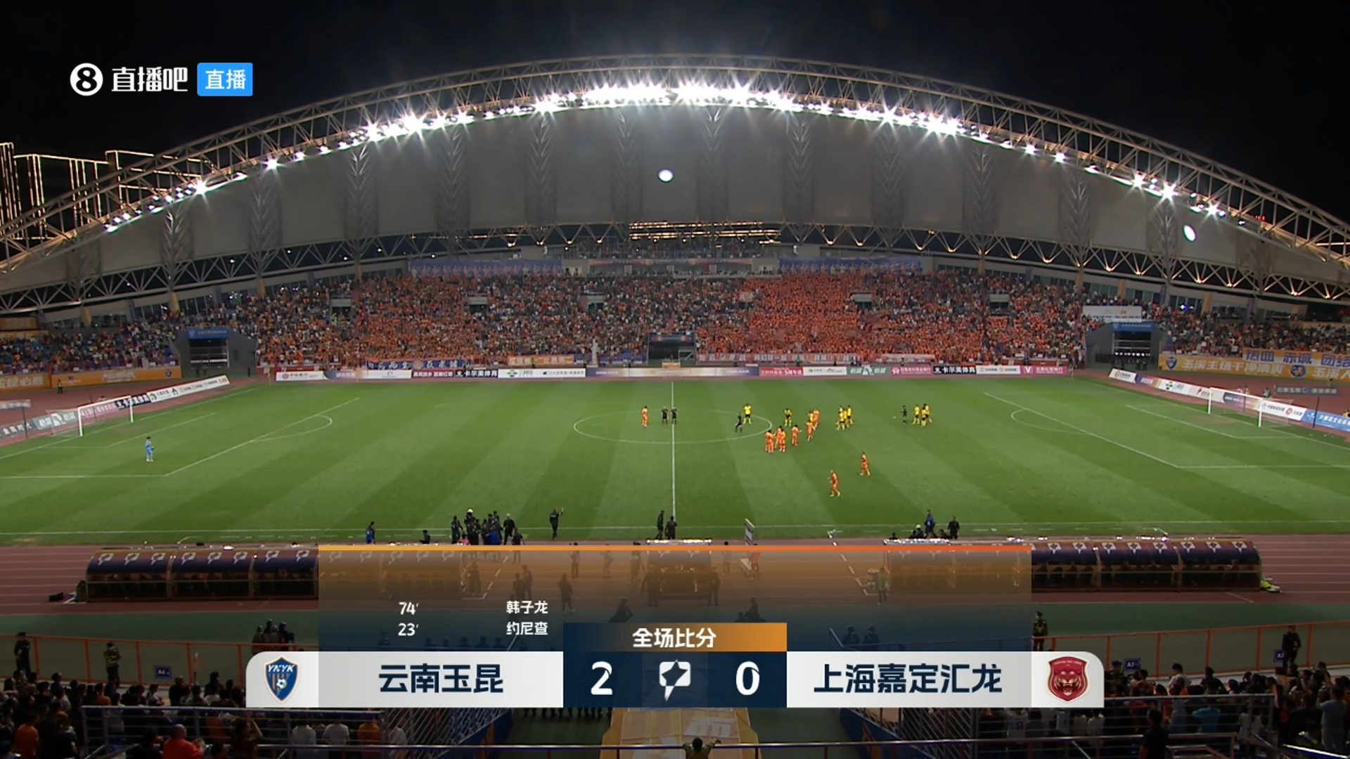 全场比赛结束,云南玉昆2-0击败上海嘉定汇龙,提前4轮升入中超。