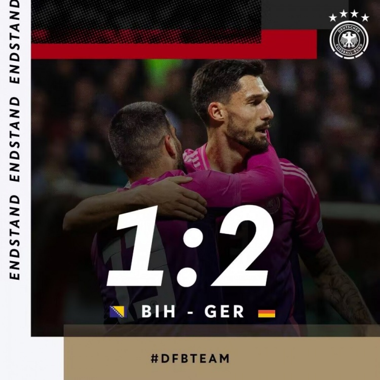 10月12日讯 北京时间10月12日凌晨2:45,欧国联A联赛第3轮,德国客战波黑。上半场翁达夫双响,德国暂2-0波黑;下半场哲科为波黑扳回一球,最终德国2-1波黑,继续位居本小组第一位。