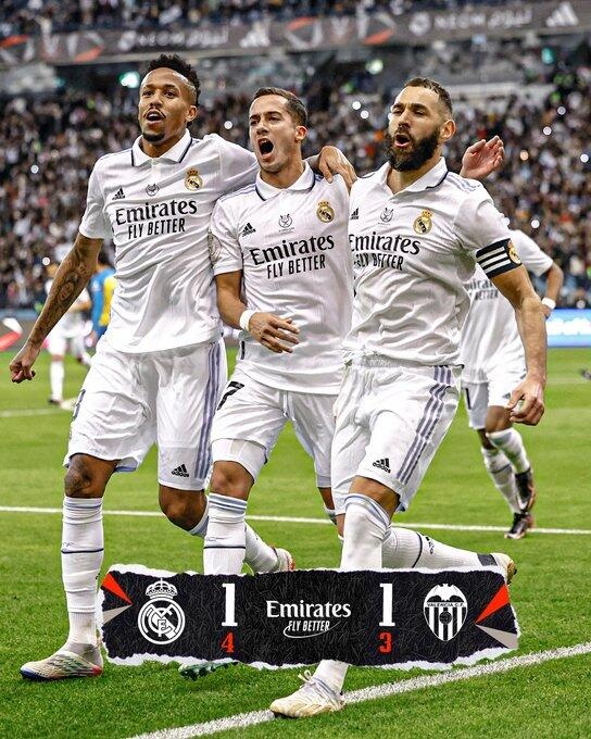 1月12日讯北京时间1月12日凌晨3:00,西班牙超级杯半决赛,皇马对阵瓦伦西亚。上半场,库马特送点,本泽马点射破门为皇马取得领先!下半场,利诺开场闪击扳平比分,米利唐伤退。常规时间双方战成1-1;加时赛双方都未能把握住进球机会;双方进入点球大战,皇马四人全部罚中,瓦伦西亚这边,库马特打飞,库尔图瓦扑出加亚点球。皇马总比分5-4瓦伦西亚晋级决赛!