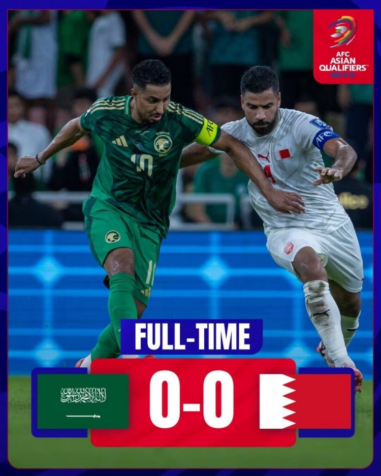 10月16日讯 北京时间10月16日凌晨2:00,世预赛亚洲区第三阶段C组第4轮,沙特主场迎战巴林。上半场两队均无建树,下半场也都没能改写比分,最终0-0战平。目前两队均积5分,沙特暂居小组第三,巴林小组第四,不过本场比赛巴林队有四名球员吃到黄牌。