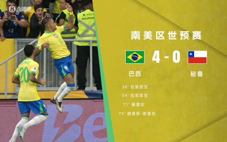 10月16日讯 北京时间10月16日8:45,世预赛南美区第10轮,巴西主场迎战秘鲁。上半场拉菲尼亚射中横梁,桑布拉诺手球,拉菲尼亚点射命中,巴西暂1-0秘鲁;下半场萨维尼奥造点,拉菲尼亚点射再进,本场比赛双响,佩雷拉精彩凌空破门,恩里克破门,最终巴西4-0秘鲁,10轮过后积16分,积分追平乌拉圭。