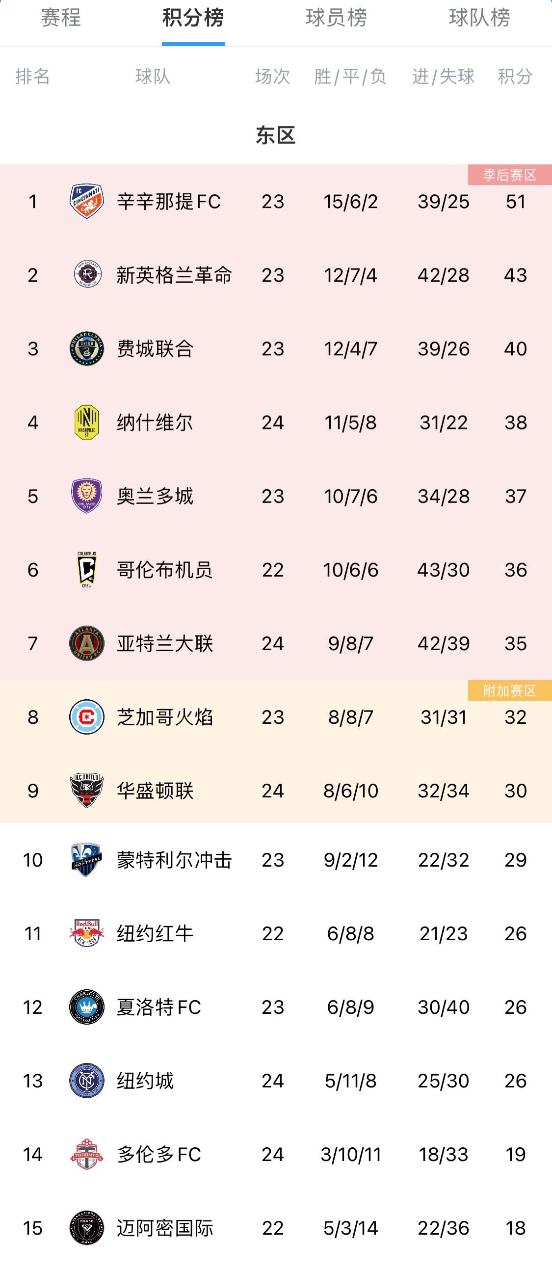 根据MLS规则,东西区第1-7名球队晋级季后赛,东西区第8-9名进行附加赛,获得东西区另一个晋级名额。