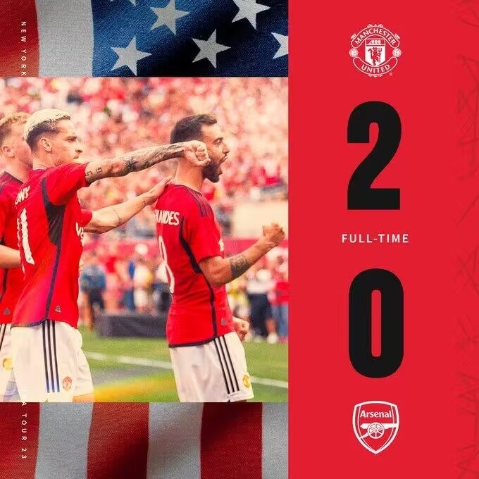 7月23日讯 北京时间今天凌晨5:00,季前友谊赛,曼联对阵阿森纳。上半场B费世界波破门,桑乔奔袭爆射建功。易边再战曼联、阿森纳先后大面积更换球员,双方再无建树。最终曼联2-0阿森纳。根据安排,本场不管比分如何都将在赛后进行点球大战。点球大战中法比奥-维埃拉失点,曼联5-3阿森纳。