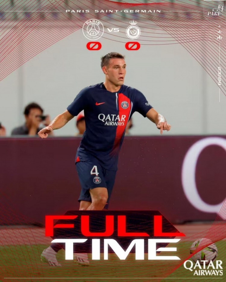 上半场补时1分钟,巴黎0-0利雅得胜利。