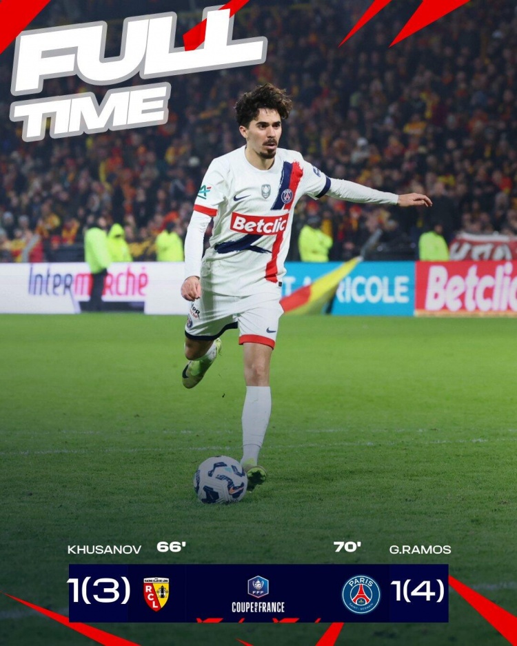 12月23日讯 法国杯1/32决赛,巴黎作客菲利斯波拉特球场挑战朗斯。上半场,阿什拉夫破门被吹,马尔基尼奥斯中框。易边再战,库萨诺夫为朗斯先拔头筹,拉莫斯帮巴黎扳平比分,登贝莱错失良机。最终常规时间巴黎1-1朗斯,双方进入点球大战。点球大战,萨福诺夫两次扑点。最终巴黎点球大战总比分5-4胜朗斯晋级。