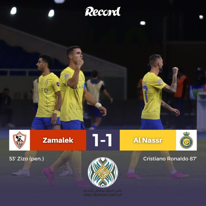 第86分钟,科南左路传中到禁区,C罗高高跃起头球攻门入网,扎马雷克1-1利雅得胜利!↓