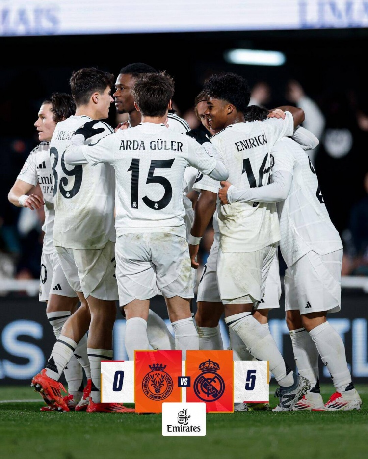 1月7日讯 北京时间1月7日凌晨2时,国王杯第3轮,皇马做客卡塔戈诺瓦球场对阵米内拉。上半场,巴尔韦德首开纪录,卡马文加、居勒尔相继破门。皇马半场3-0领先米内拉。下半场,莫德里奇打进一球,随后居勒尔再下一城。最终皇马5-0大胜米内拉,各项赛事取得4连胜,晋级至国王杯16强。