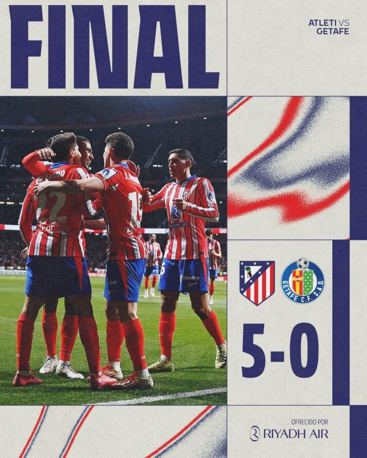 2月5日讯 北京时间2月5日04:30,西班牙国王杯八强战马竞迎战赫塔费的比赛在利雅得航空大都会球场进行,上半场小西蒙尼双响,阿尔瓦雷斯助攻利诺破门+失单刀,下半场小西蒙尼破门无效,科雷亚传射建功,索尔洛特推射破门,最终马竞5-0赫塔菲晋级四强。
