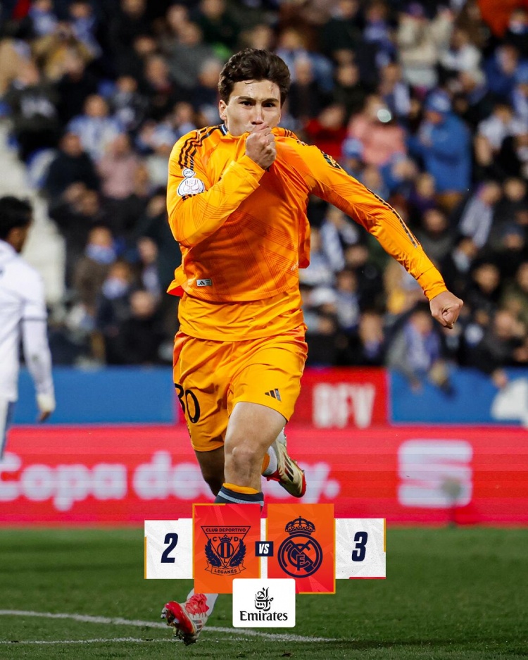 2月6日讯 国王杯1/4决赛,皇马对阵莱加内斯,比赛在布塔克球场打响。上半场,莫德里奇、恩德里克先后破门;拉蒙送点,克鲁兹扳回一球。下半场,克鲁兹双响扳平比分;补时阶段,小将贡萨洛-加西亚绝杀!最终,皇马3-2莱加内斯,拒绝被逆转,晋级国王杯4强!