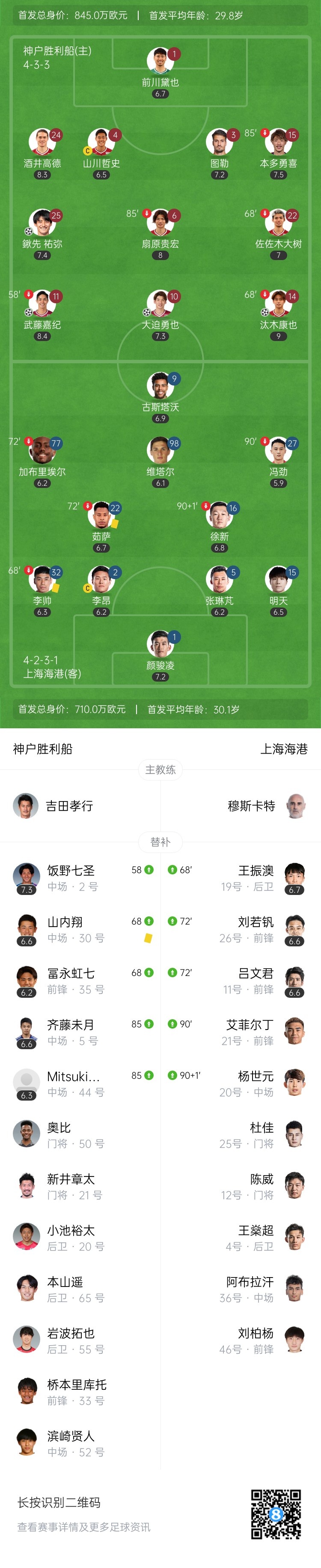 第54分钟,汰木康也左路传中被解围,本多勇喜顺势传到禁区右侧,锹先祐弥跟进爆射破门!上海海港0-2神户胜利船↓