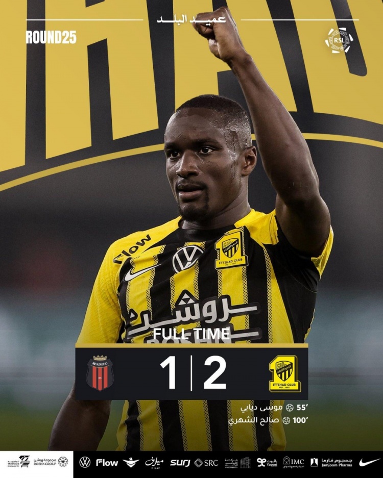 第97分钟,吉达联合获得点球!左路下底传到禁区艾哈头球解围打在手上裁判经过var提示判罚点球,谢赫里主罚点球破门,吉达联合2-1利雅得体育。↓