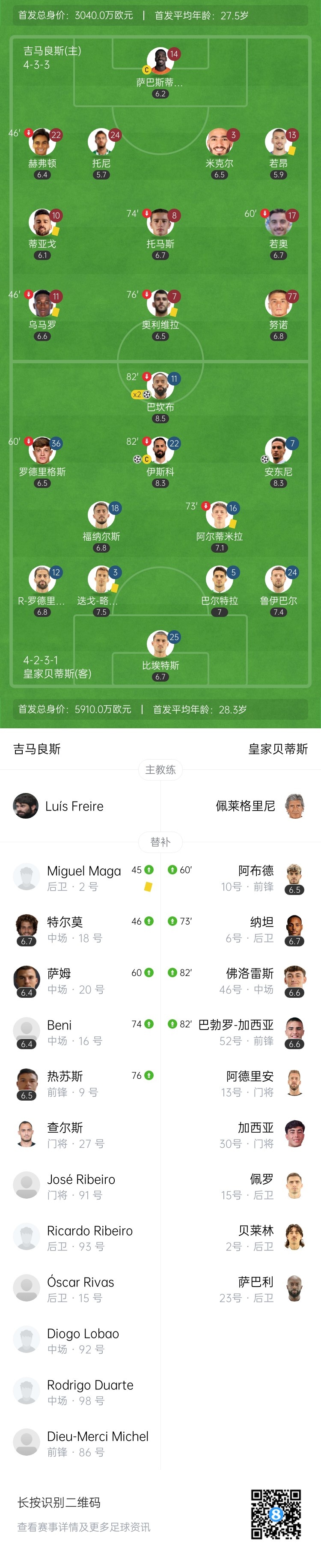 第58分钟,安东尼右路得球奔袭!杀进禁区内右侧左脚抽射破门!一条龙!安东尼完成传射!贝蒂斯3-0吉马良斯,总比分5-2领先↓
