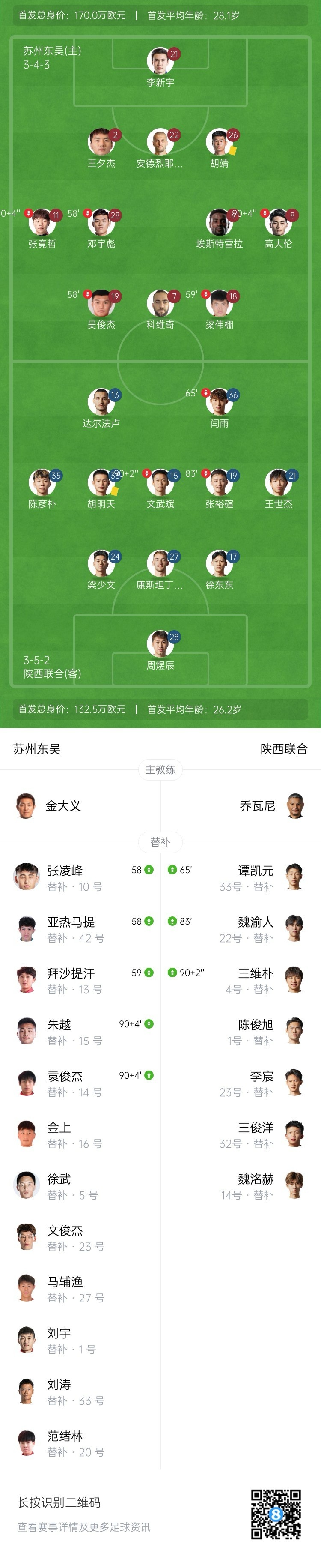 全场比赛结束,陕西联合客场0-0闷平苏州东吴。