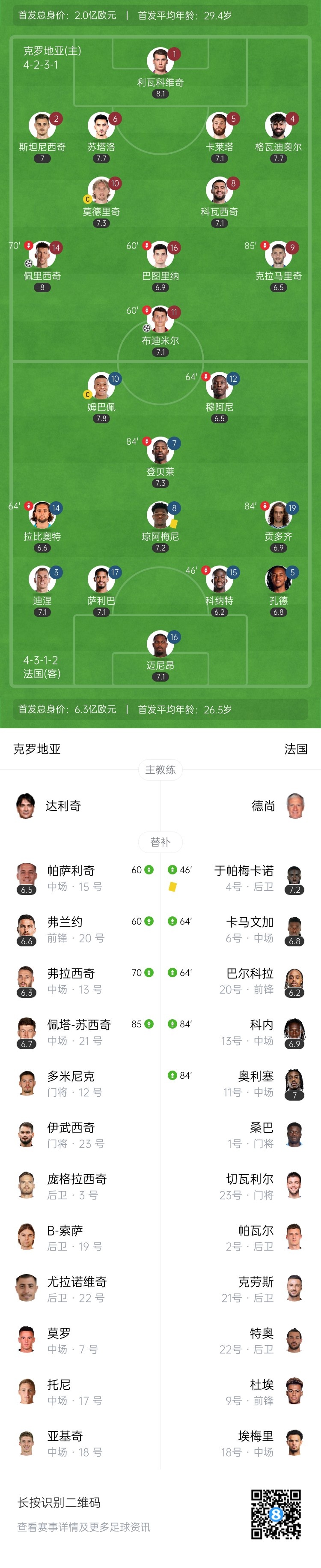 【双方首发及换人信息】
