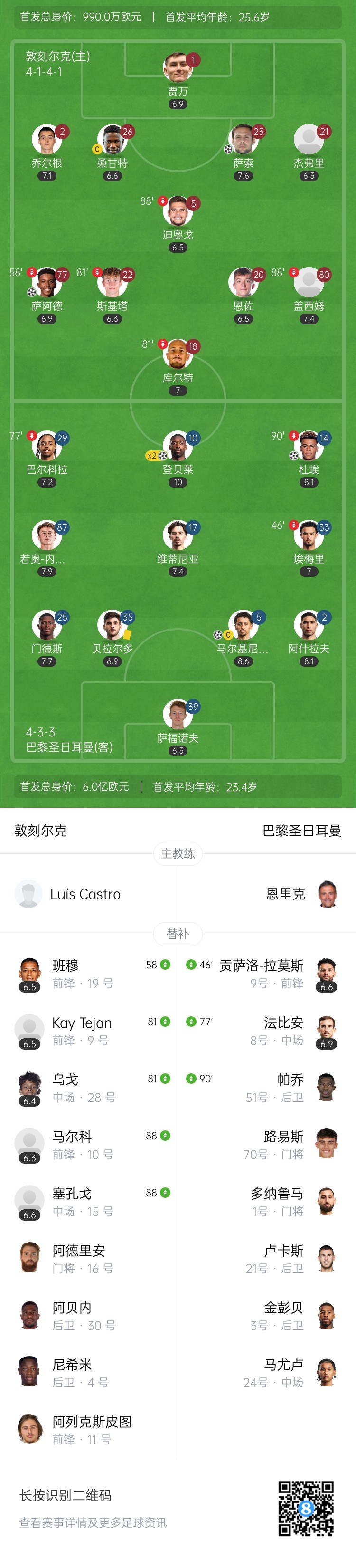 【双方首发及换人信息】