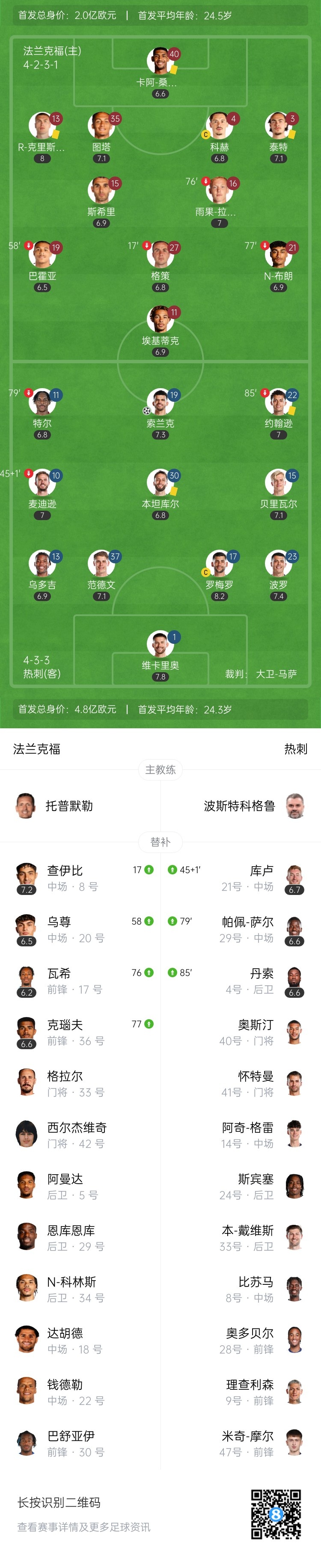 【双方首发及换人信息】