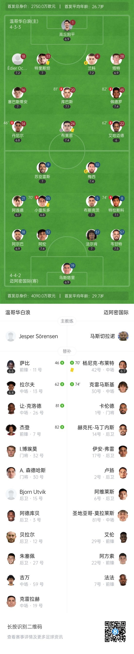 双方首发以及换人信息: