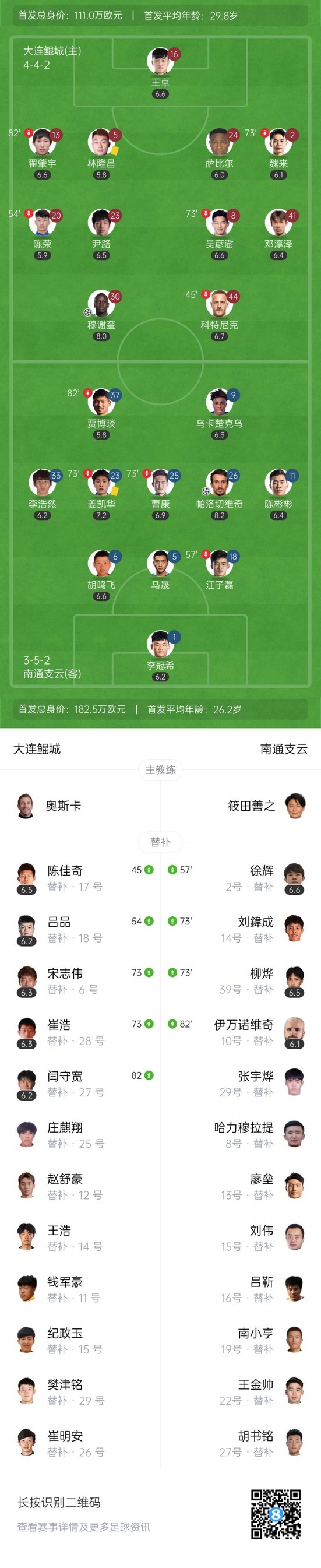双方首发以及换人信息: