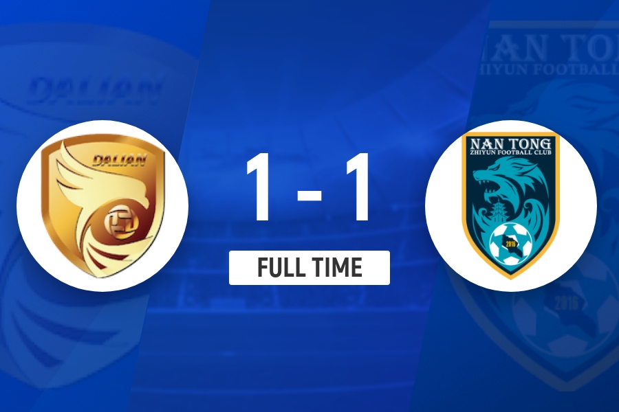 上半场补时2分钟,大连鲲城0-1南通支云。