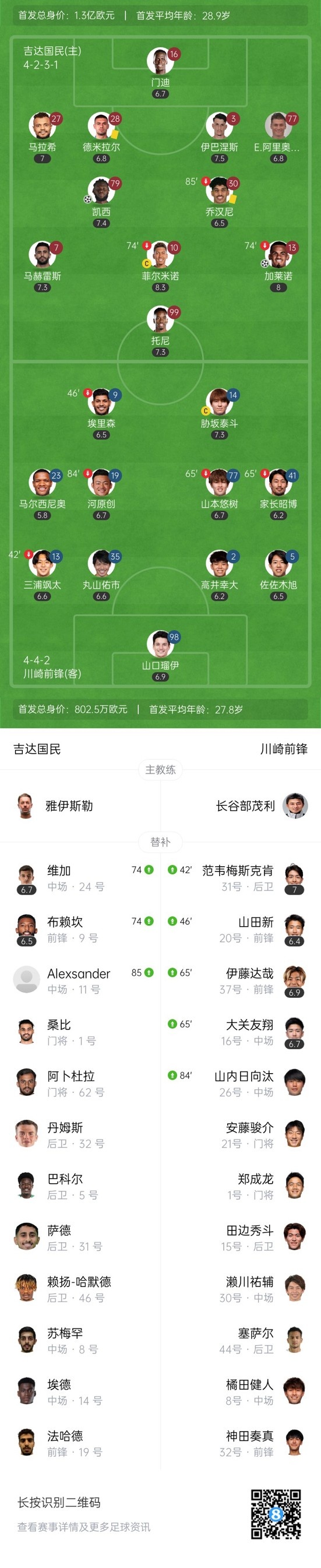 双方首发以及换人信息: