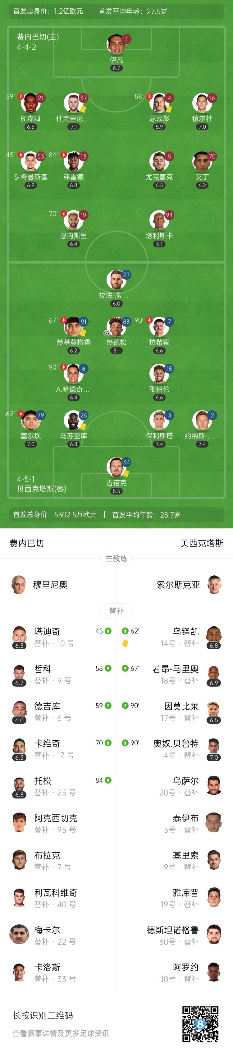 全场比赛结束,费内巴切0-1遭贝西克塔斯赛季双杀。