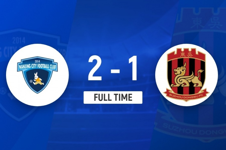 伤停补时4分钟。全场比赛结束,南京城市2-1苏州东吴。