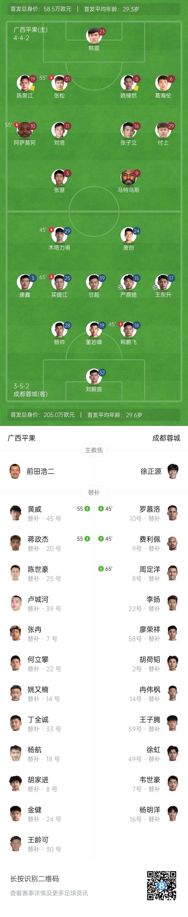 全场比赛结束,成都蓉城客场3-0轻取广西平果。