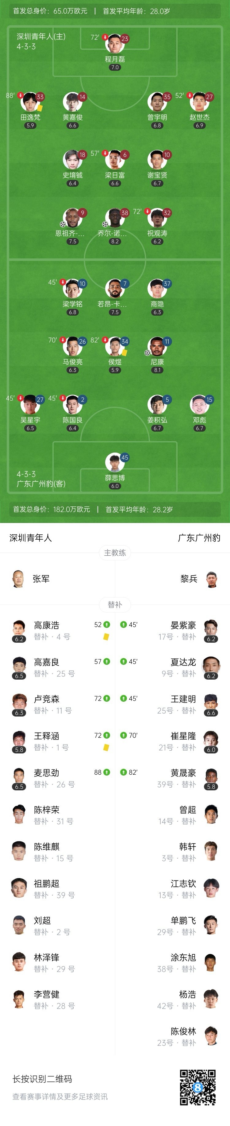 全场比赛结束,广州豹1-2不敌深圳青年人。