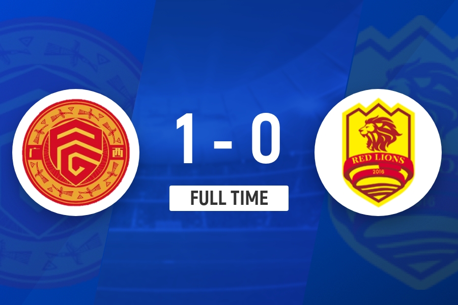 全场比赛结束,广西平果主场1-0战胜青岛红狮。