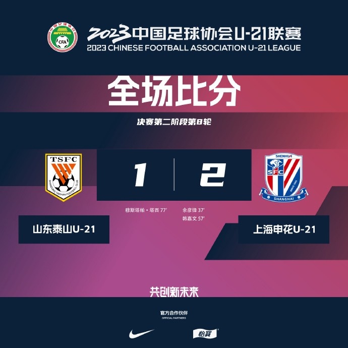凭借着余彦锋和韩嘉文的进球,申花U21队以2-1的比分战胜泰山U21队,为泰山U21队进球的是穆斯塔帕-塔西。