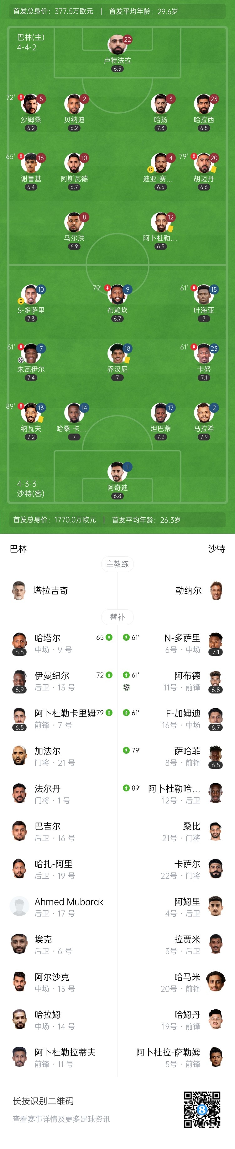 下半场补时9分钟。最终全场比赛结束,巴林0-2沙特。
