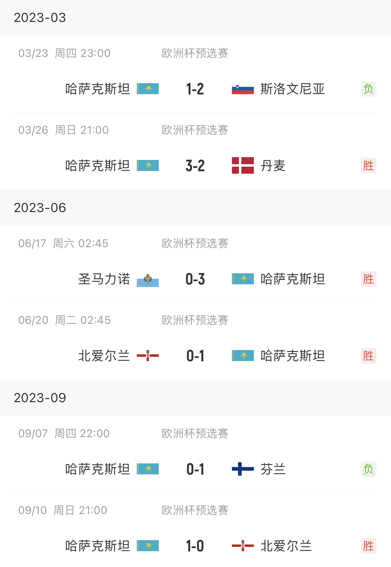 9月10日讯 欧洲杯预选赛H组第6轮,哈萨克斯坦主场1-0击败北爱尔兰,积分追平芬兰,超越丹麦,暂时升至小组第二。