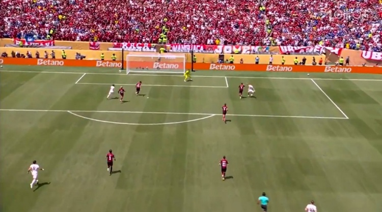 第43分钟,弗拉门戈右路任意球开到禁区,科尔维尔关键门线解围破坏↓
