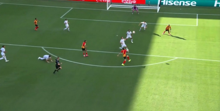 第90+8分钟,突尼斯球员禁区内解围踢翻洛杉矶球员,通过VAR,裁判判罚点球!↓