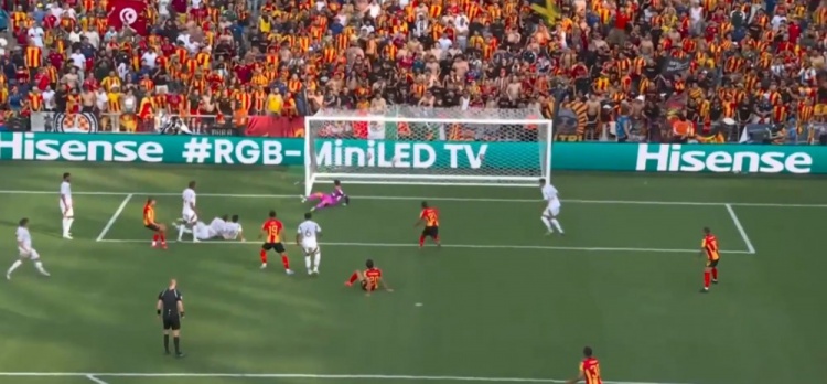 突尼斯希望领先!第70分钟,哈米达突破到禁区被破坏,贝莱利小角度得球后抽射近角,皮球从洛里两腿之间钻入网窝,洛杉矶FC0-1突尼斯希望!↓