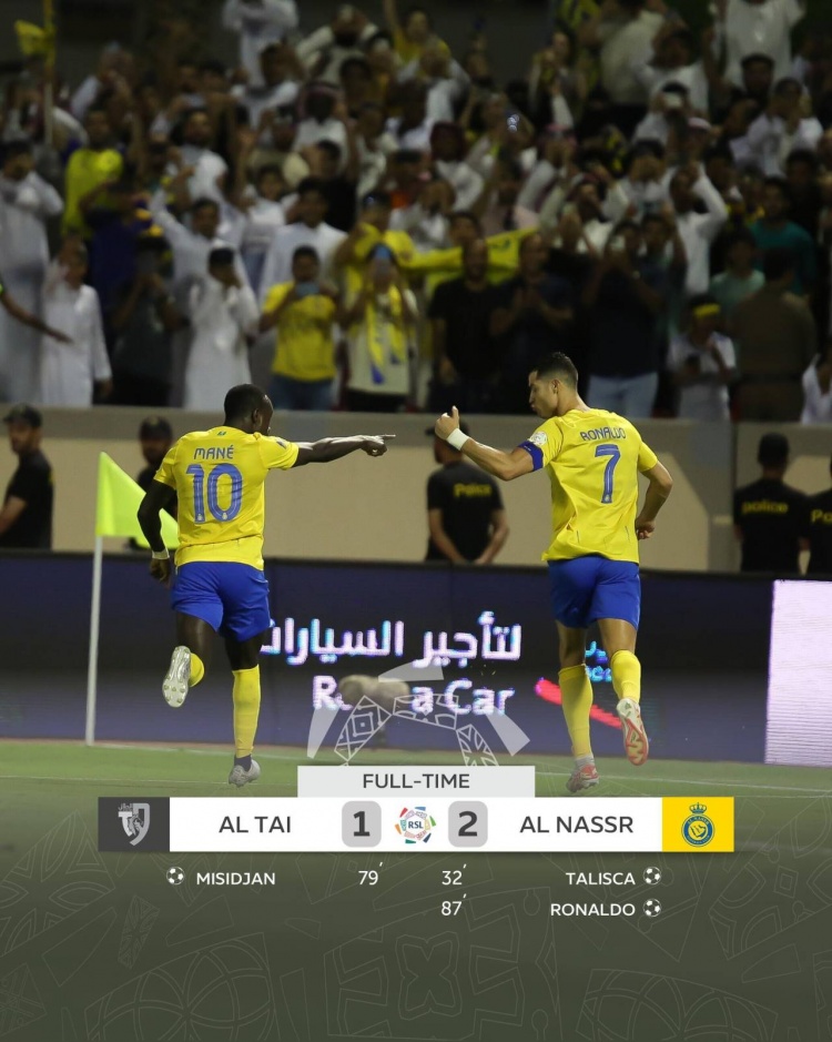 第31分钟,哈纳姆右路送出斜传,C罗顺势将球一挑,塔利斯卡跟进低射破门,利雅得胜利1-0塔伊。↓