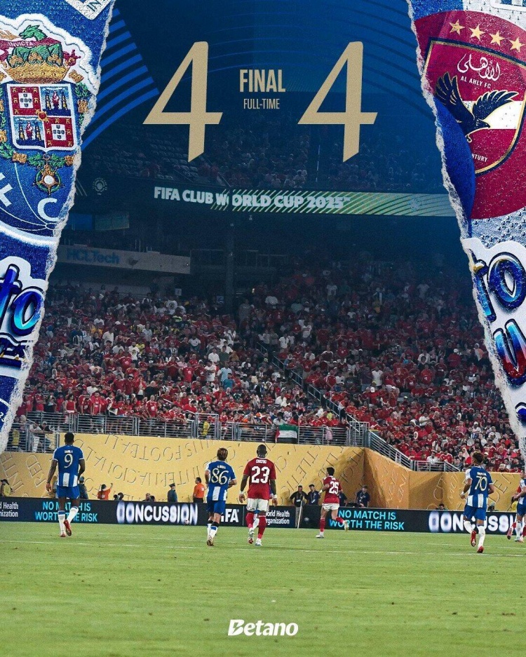 伤停补时6分钟。全场比赛结束。波尔图4-4开罗国民。