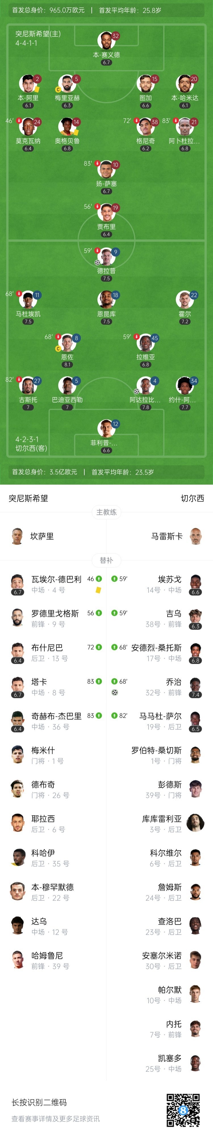 第45+3分钟,恩佐再次挑传,德拉普前插晃动后推射破门!切尔西2分钟2球!恩佐2分钟助攻双响!切尔西2-0领先突尼斯希望↓