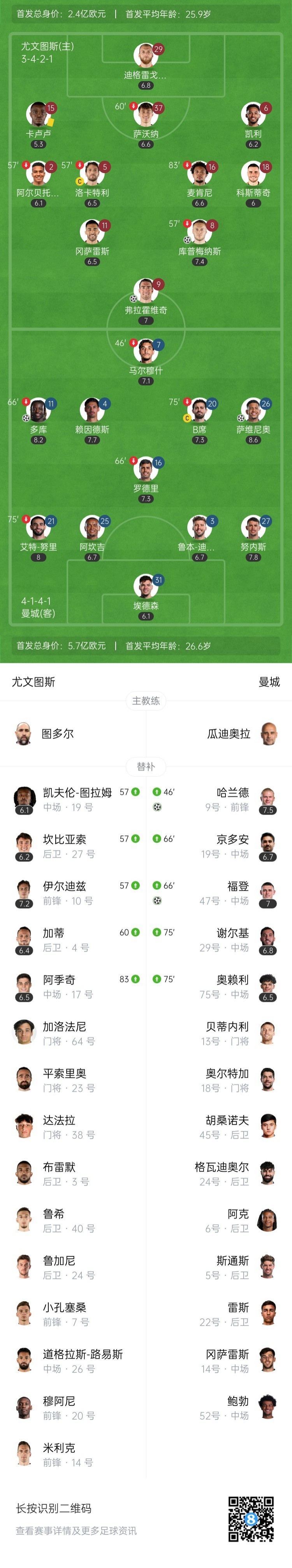 全场比赛结束,曼城5-2战胜尤文图斯。