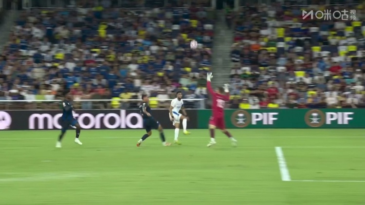 第85分钟,新月前场抢断,禁区内抽射破门!但是裁判先响哨了,判罚了新月抢断时的犯规,进球无效↓