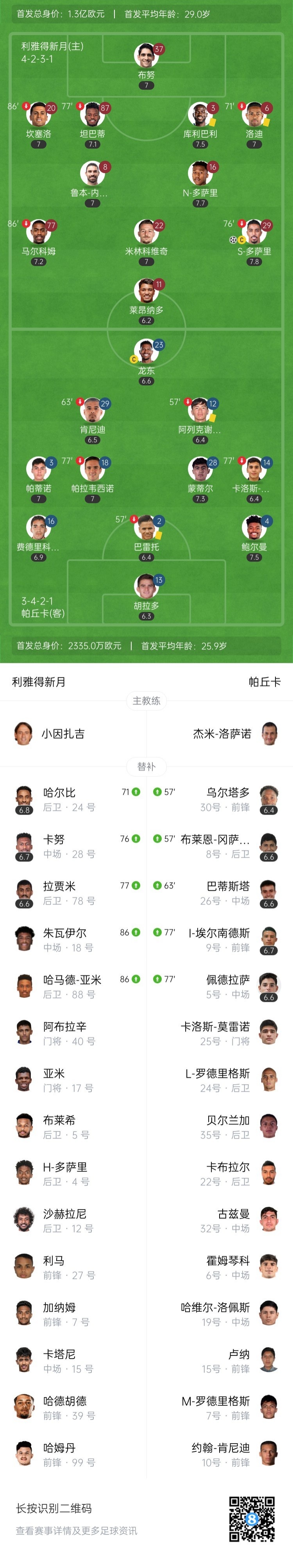 6月27日讯 北京时间9:00,世俱杯小组赛H组第3轮利雅得新月vs帕丘卡,比赛在吉奥迪斯公园球场打响!上半场,N-多萨里助攻S-多萨里,帮助利雅得新月取得领先!下半场,双方均无建树。最终,利雅得新月2-0战胜帕丘卡,小组第二出线,1/8决赛将战曼城!帕丘卡小组赛三连败垫底出局!