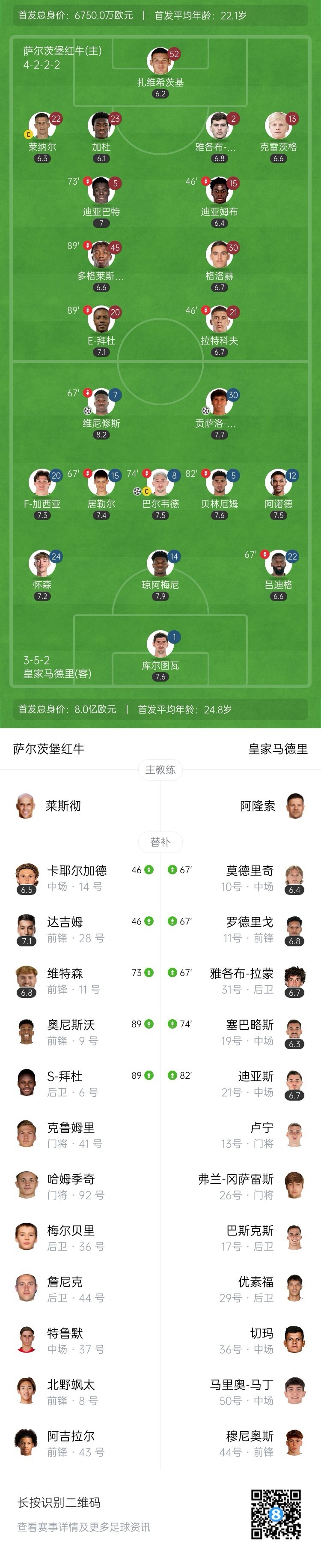 全场比赛结束,皇马3-0萨尔茨堡红牛。