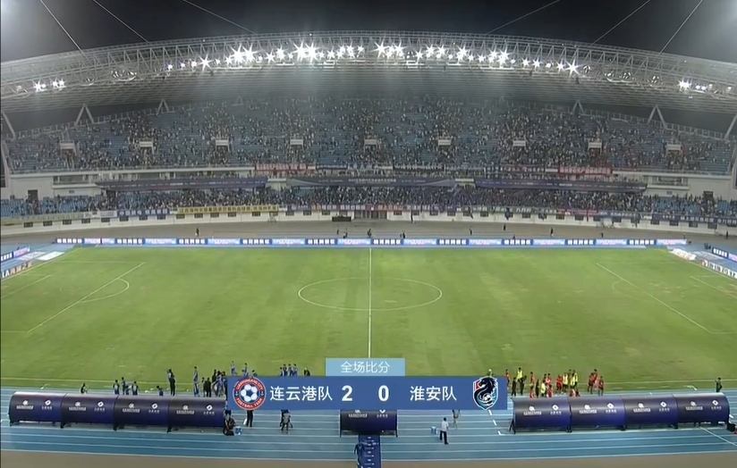 下半场第90+5分钟,淮安队最后的角球机会,门将来到前场参与进攻,连云港队29号嵇皓翔反击空门得手,连云港2比0领先!